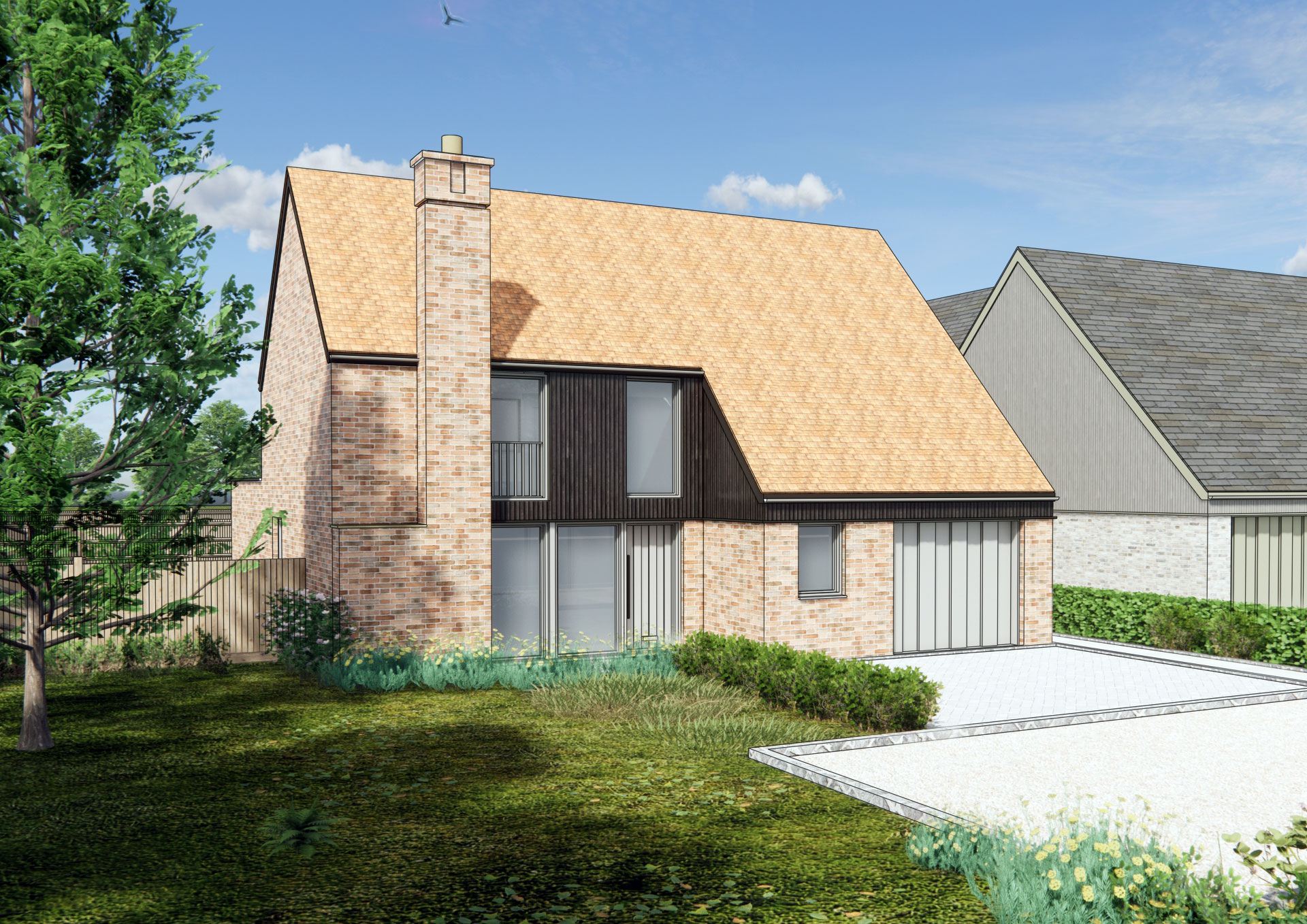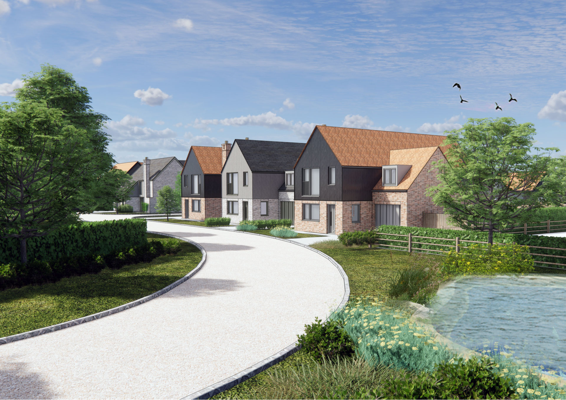 Each self/custom-build home will adhere to clear design guidelines covering plot size, siting, and material palettes. These parameters ensure consistency in architectural quality while allowing for a diverse range of styles, from contemporary interpretations of local vernacular to more traditional or modern designs. The aim is to foster a distinctive yet cohesive architectural identity that reflects the character of Orwell and contributes positively to its rural setting.