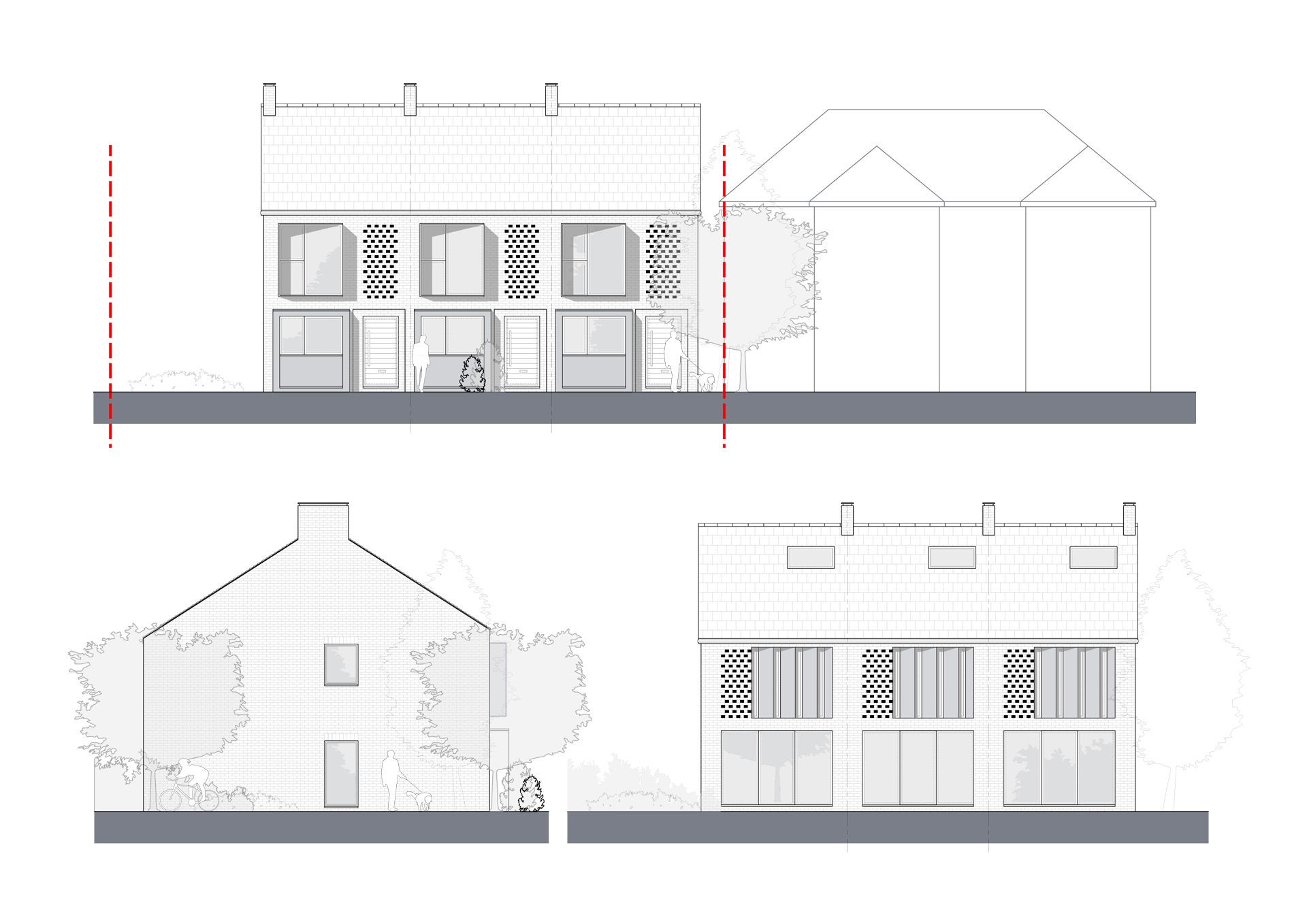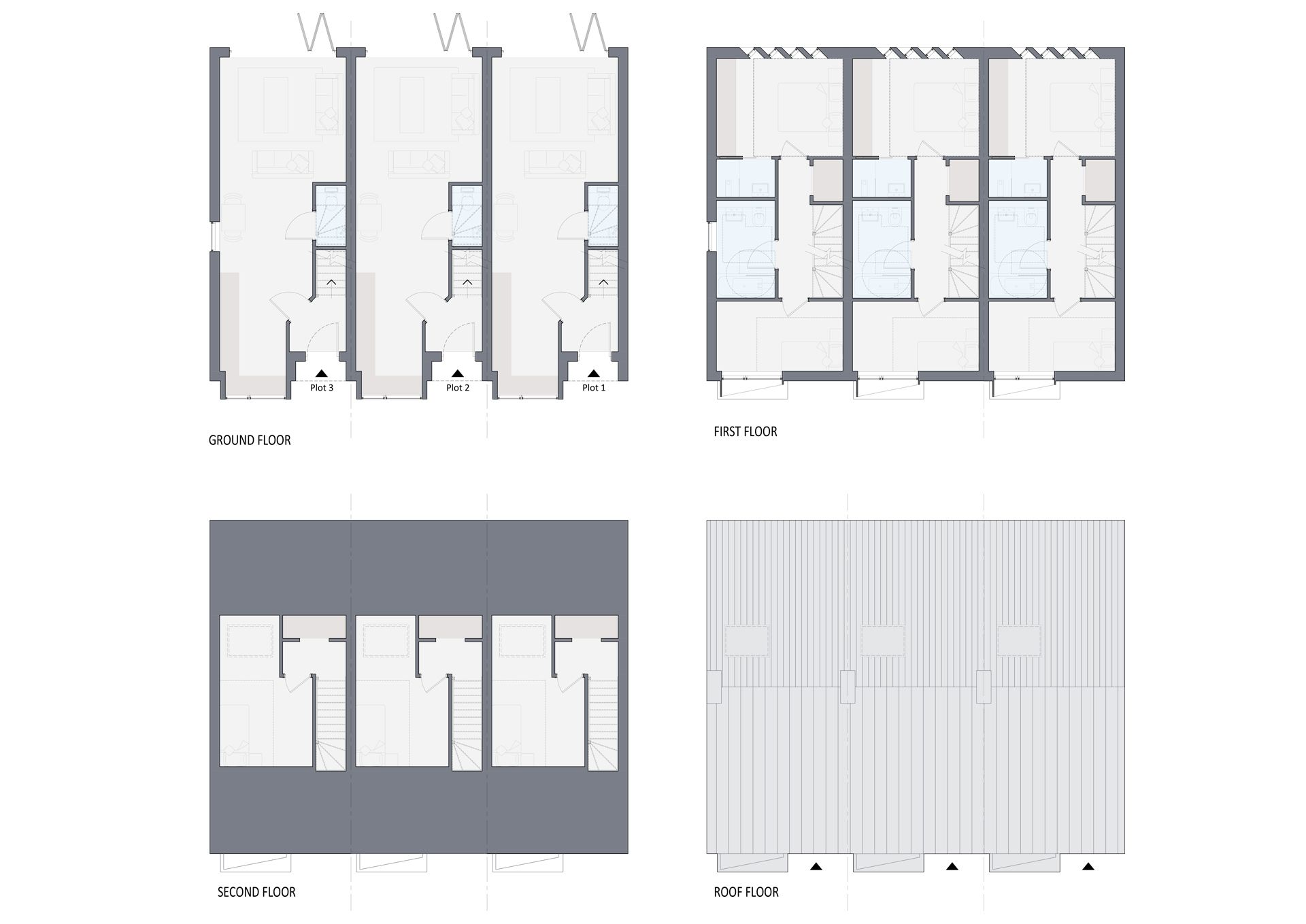 The proposal explores the traditional C19 terraced house typology and seeks to ‘repair’ the frontage by re-introducing a continuous built-form which once existed. The proposed palette of materials are very familiar; weathered grey brick and slate roofs used in conjunction with vertical proportion openings and bay windows.