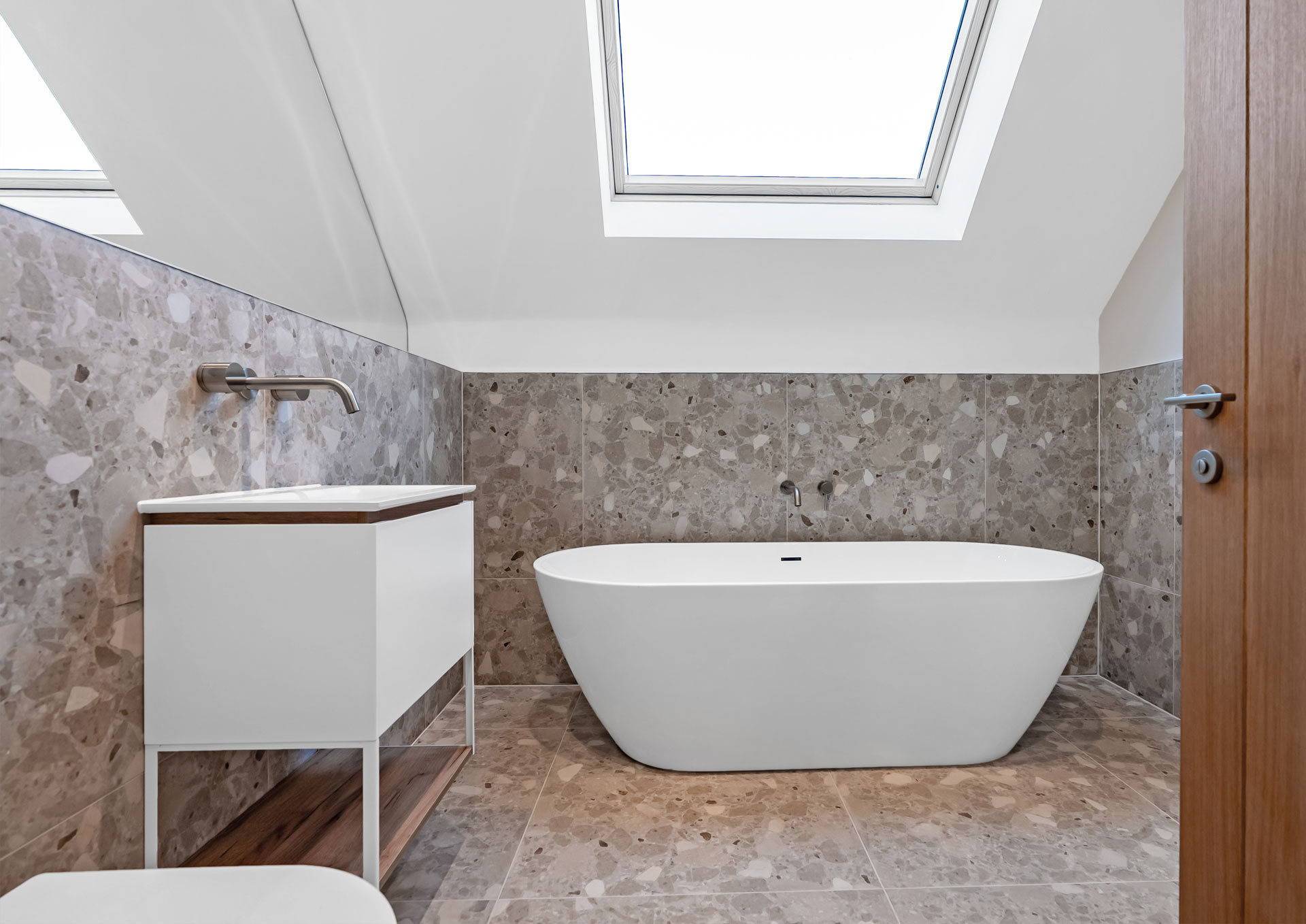 The front elevation has been designed to be sympathetic to the neighbouring properties with its façade reflecting the simple style of the Victorian houses with stone detailing. This association is continued in the proposed palette of materials; buff brick under zinc pitched roofs.