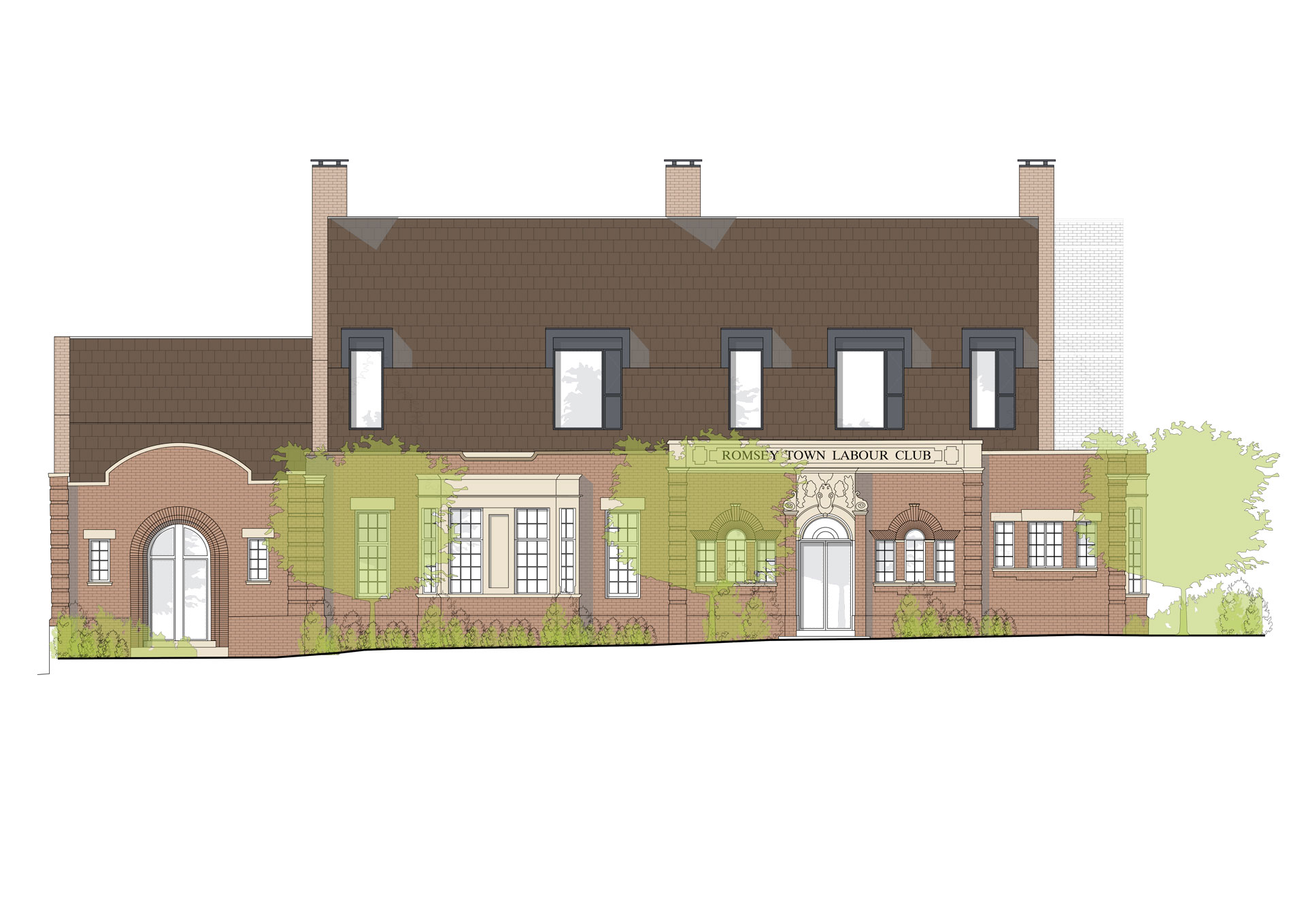Mindful of this, Romsey Labour Club meticulously curated a material palette that blends modern and traditional elements in a contemporary fashion. The juxtaposition of hung tiles above the buildng of local interest (BLI) creates a compelling visual contrast, enriching the historical foundation with a touch of modernity.